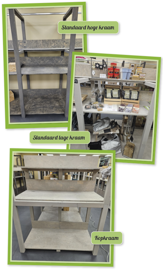 De formaten van de kramen: